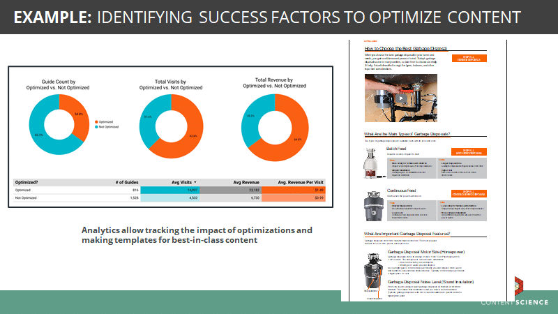 Content analytics encompasses a wide variety of metrics. In addition to standard data such as pageviews and downloads, we also look at voice of customer measures such as sentiment and perceptions, as well as questions and decisions users have and make using content.