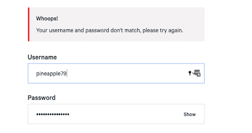 And please, never blame the user. By labeling something as wrong or incorrect, you might make the user feel like they’ve made a mistake, which might lead them to feel frustrated and even abandon what they were doing. Instead, guide them gently and safely back to where they were trying to go.