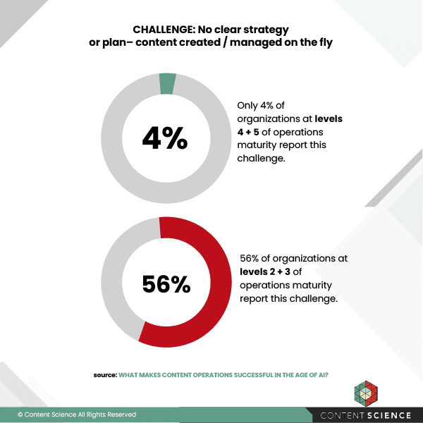 Organizations at higher levels of content operations maturity are also less likely to report challenges that hold other back, such as lack of content strategy.